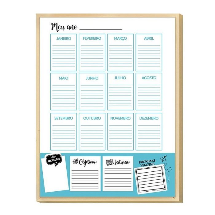 Quadro Mural de Calendário Mensal Dias da Semana Notas Caixa - 30x40cm -