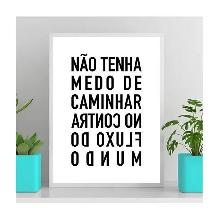 Quadro Não Tenha Medo De Caminhar No Contra Fluxo 45x34cm - com vidro:Madeira preta preta