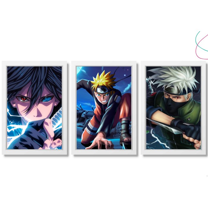 Quadro Naruto Kakashi Sasuke Animes moldura e vidro:Branca