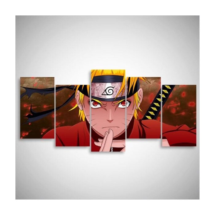 Quadro Naruto Uzumaki Para Quarto Mosaico 5 Peças