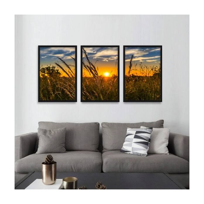 Quadro Natureza Paisagem Entardecer Para Sala Quarto com Moldura Moldura Preta