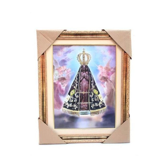 Quadro Nossa Senhora Aparecida com Vidro e Moldura 52x42 cm