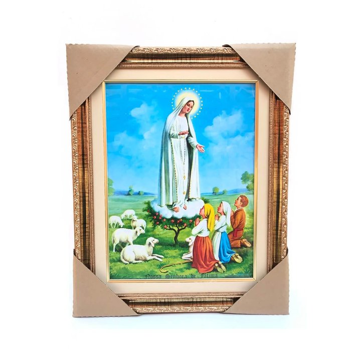 Quadro Nossa Senhora De Fátima Com Vidro E Moldura 52X42 Cm