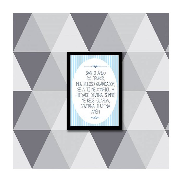 Quadro Oração "Santo Anjo Do Senhor" 33x24cm - com vidro:Madeira preta