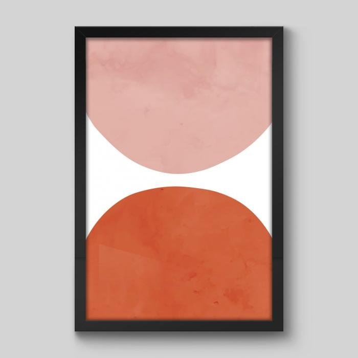 Quadro Orgânico Meio Círculos Rosa e Laranja - 45x30cm - Moldura Padrão Preto