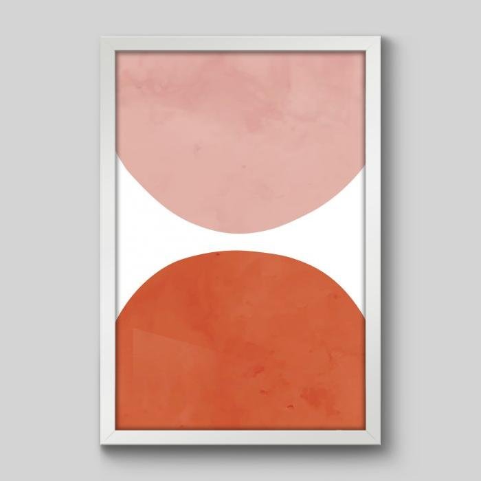 Quadro Orgânico Meio Círculos Rosa e Laranja - 60x40cm - Moldura Padrão Branco