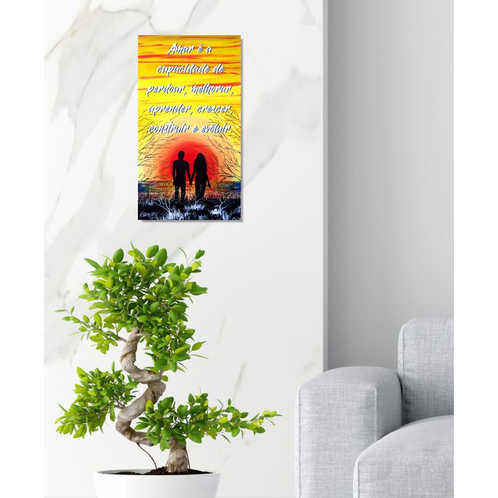 Frase no quadro : "Amar é a capacidade de perdoar, melhorar, aprender, crescer, construir e evoluir."