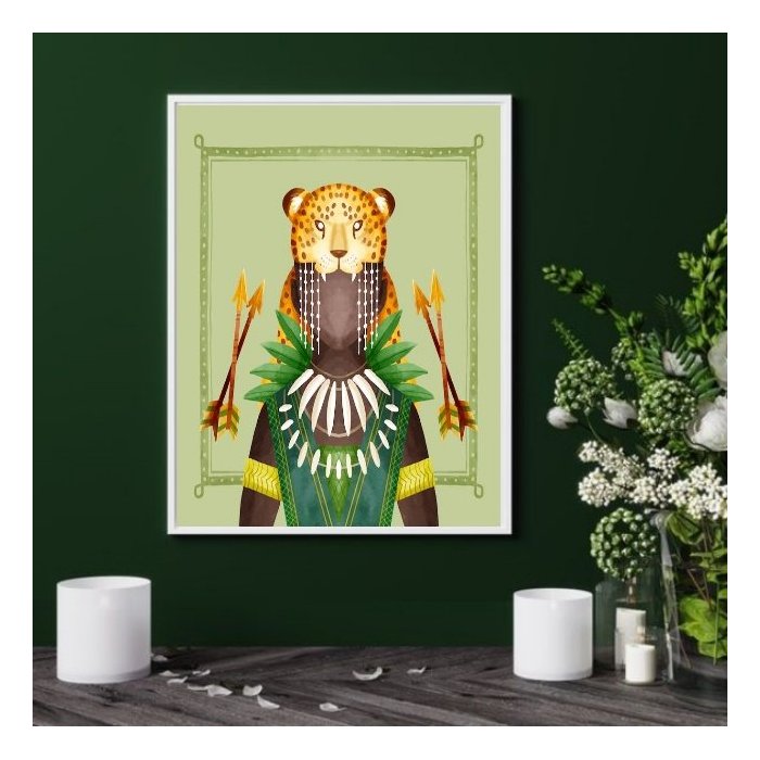 Quadro Orixá Oxóssi - Candomblé - 60x48cm:madeira Branca