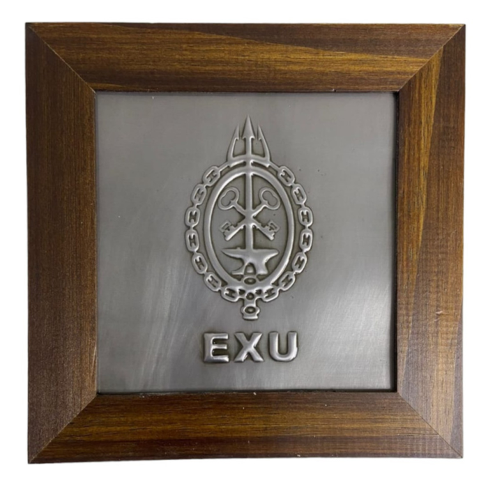 Quadro Orixá Exú Em Aço e Madeira Imbuia 15,5 x 15,5 cm