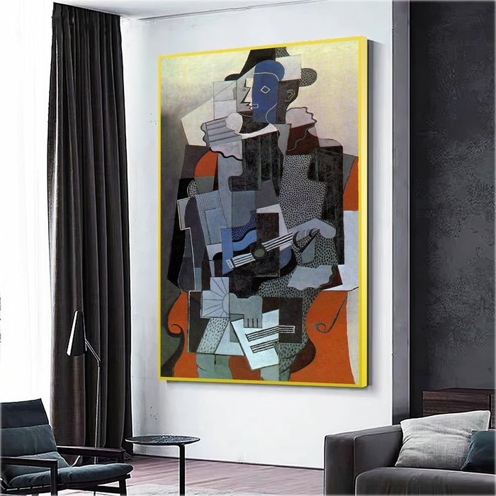 Quadro Pablo Picasso Arlequim Tocando Guitarra:60x40 cm/BRANCA