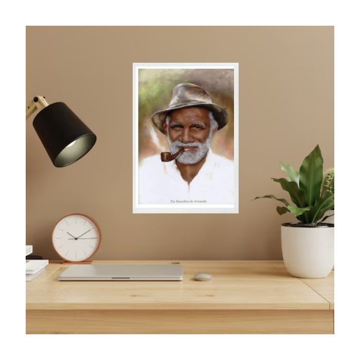 Quadro Pai Benedito de Aruanda 45x34cm:moldura Branca