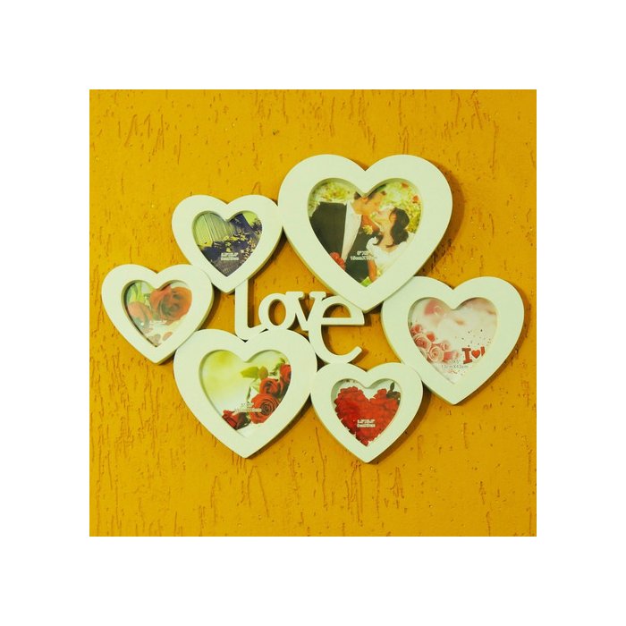 Quadro Painel 6 Fotos Love Corações Porta Retratos Parede Coração