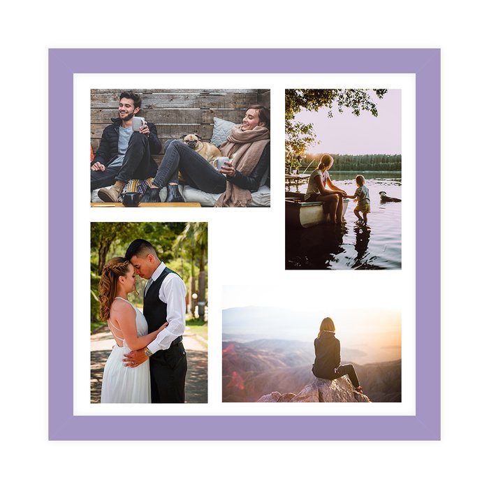 Quadro Painel Multifotos 4 fotos 10x15 Paspatur e Vidro Comum - Lilás