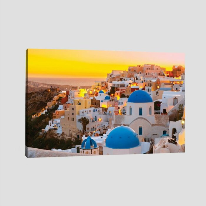 Quadro Decorativo Paisagem Grécia Tela Canvas Chassi Interno 95x63cm. Acabamento Chassi Interno. Tamanho: 95x63cm. Material: Tela Canvas. Referência: QCCG112X37l2X27a0X369. Dispensa vidro. . Quadro com imagem impressa em tecido canvas (o mesmo usado em tela de pintura) esticado em chassi de madeira tratada com 3 cm espessura. As laterais do quadro são cobertas com a extensão da imagem frontal (sem alterar a imagem original da frente do quadro) O quadro tela canvas vai pronto pra colocar na parede e dispensa uso de vidro.