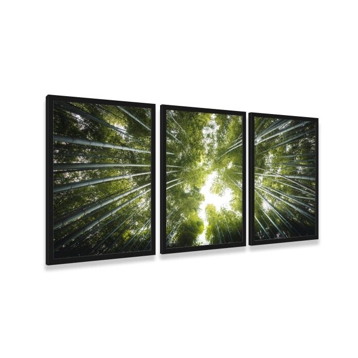 Quadro Paisagem para Sala Topo Floresta de Bambu Moldura Preta