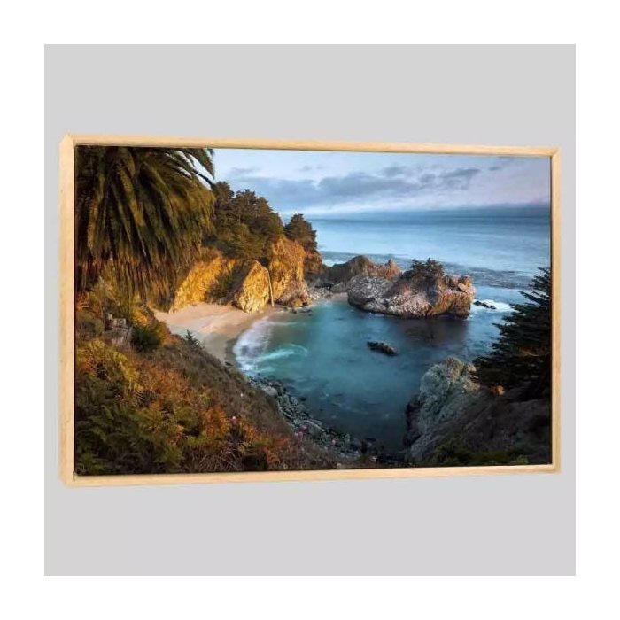 Quadro Paisagem Paraíso 95x63cm Moldura Natural Laranja