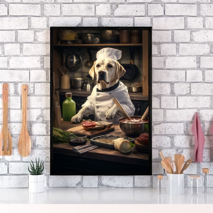 Quadro para Cozinha Cão Raça Labrador 24x18cm:madeira Preta
