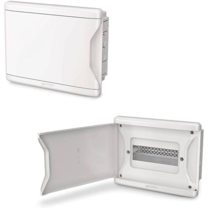 Com design clean e moderno, os novos quadros de distribuição Krona aliam beleza e segurança em instalações residenciais e comerciais. Disponível em 6 modelos sem barramento, com capacidade de 4/3, 8/6, 12/9, 16/11, 24/18 e 36/27 disjuntores DIN/Nema. Função Os Quadros de Distribuição são destinados à assegurar a proteção mecânica de dispositivos elétricos e encaminhar cabos e condutores em instalações elétricas de baixa tensão, garantindo a segurança e a qualidade da instalação. Aplicação Ideal para aplicações em instalações elétricas abrigadas, de baixa tensão, de forma embutida ou aparente, em estruturas de alvenaria ou parede oca (DryWall) em edificações residenciais, industriais e comerciais. Benefícios Versatilidade: Compatível com disjuntores padrão DIN/Nema. Fácil manuseio: Porta possui opção de inversão do sentido de abertura (direito ou esquerdo). Abertura da porta 180°. Fácil instalação: Entrada para bitolas de 20 a 40mm no fundo e nas laterais. Barramento permite fixação nos 4 lados do quadro de distribuição e sistema de trilho por simples encaixe. Segurança: Produzido em PVC rígido antichama (não propagam fogo). Mais espaço interno para organização do cabeamento. Praticidade e beleza: Tampa com design diferenciado, gera leveza ao ambiente. Superfície lisa facilita a limpeza e acompanha tampas cegas que dispensam corte. Não acompanha Barramento Neutro/Terra nestes códigos. Imagens meramente ilustrativas. / Não acompanha Disjuntores.