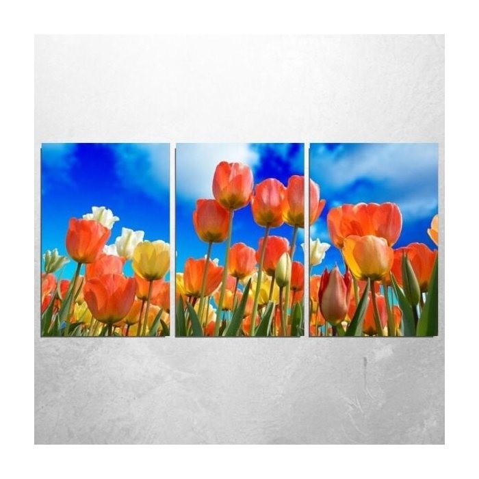 Quadro Para Sala Tulipas com Fundo Azul 120x60cm