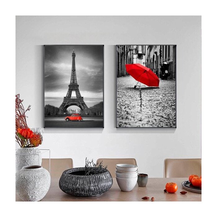 Quadro Paris e Guarda Chuva - Kit 2 telas - 150 x 100 cm - Branca
