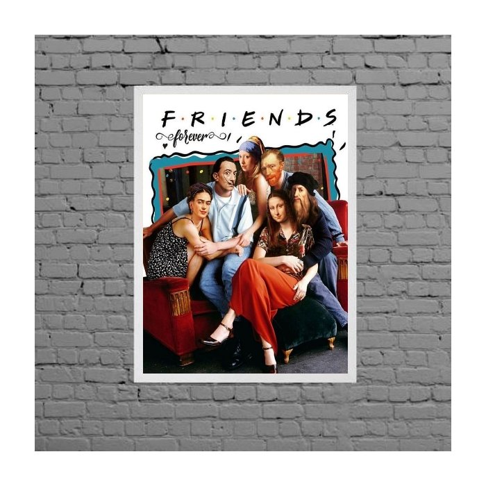 Quadro Paródia Friends Pintores Famosos 45x34cm - com vidro:Madeira preta