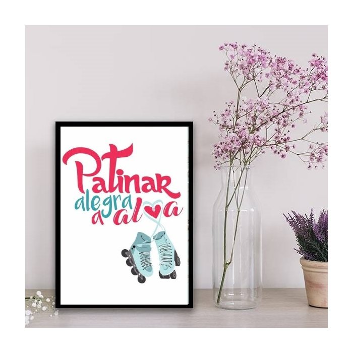 Quadro Patins Patinar Alegra A Alma 33x24cm - com vidro:Madeira preta Madeira preta