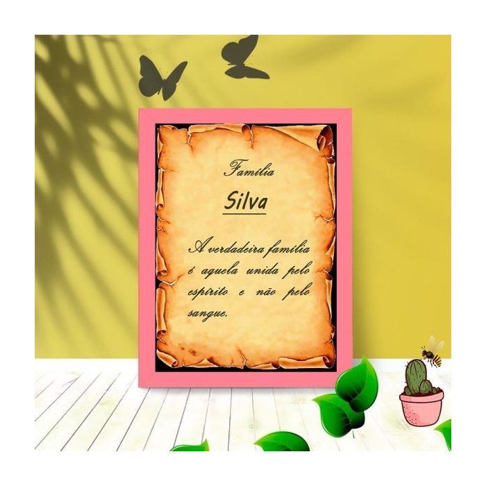 Quadro Pergaminho Família Silva com Moldura e Vidro 25X33:Rosa
