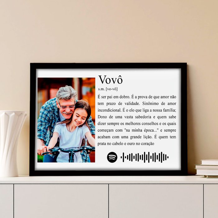 Surpreenda essa pessoa especial com o Quadro Personalizado Vovô e eternize este momento com essa linda decoração em um lindo quadro com moldura e Link de música que será tocada ao apontando o celular para ela. Perfeita para qualquer ambiente da casa além de emocionar quem você ama é também um lindo objeto de decoração tenho certeza que todos vão adorar.