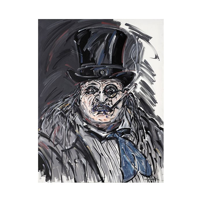 Pintura inspirada em: Oswald Cobblepot, Universo, vilão, Batman, eternamente, Gotham City, Arkham Azylum, retrato, inimigo, quadrinhos, revistas, filme, Danny DeVito, Warner Bros entertainment pictures, desenho, personagem.