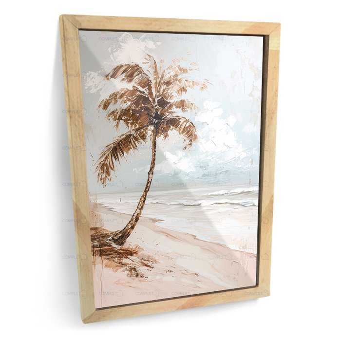 Quadro Pintura Paisagem Coqueiro Praia Moldura Crua e Vidro