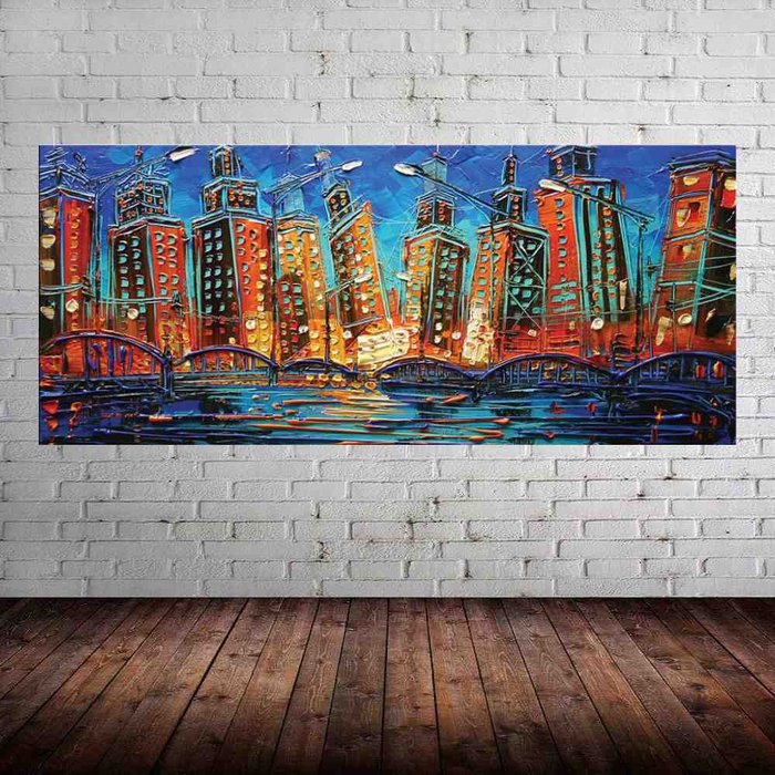 Quadro pintura em tela feito à mão. 100% artesanal e pintado à mão. Técnica: acrílica e óleo sobre tela. Tela vem esticada em estrutura de madeira (chassi) de 3,5cm de espessura e pronto para pendurar na parede.
