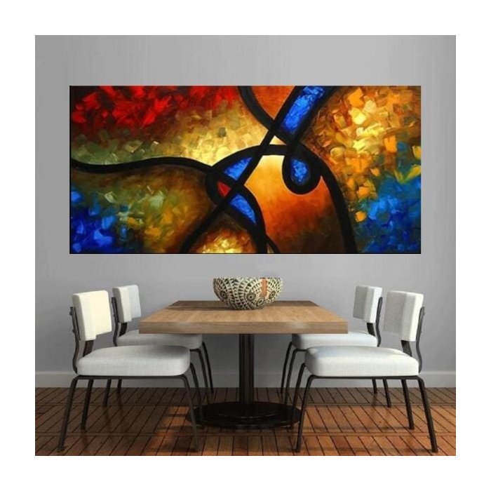 Quadro Pintura Tela Abstrato Moderno Cod 2455 - 80cm (A) x 160cm (L)