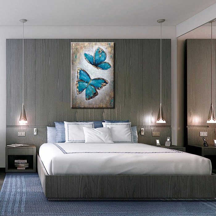 Quadro Pintura Tela borboleta amante azul Sala de Estar 5124
