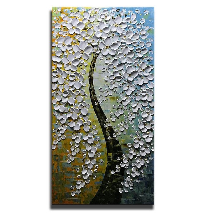 Quadro Pintura Tela brancas moderno óleo 5593: 60cm (A) x 110cm (L)