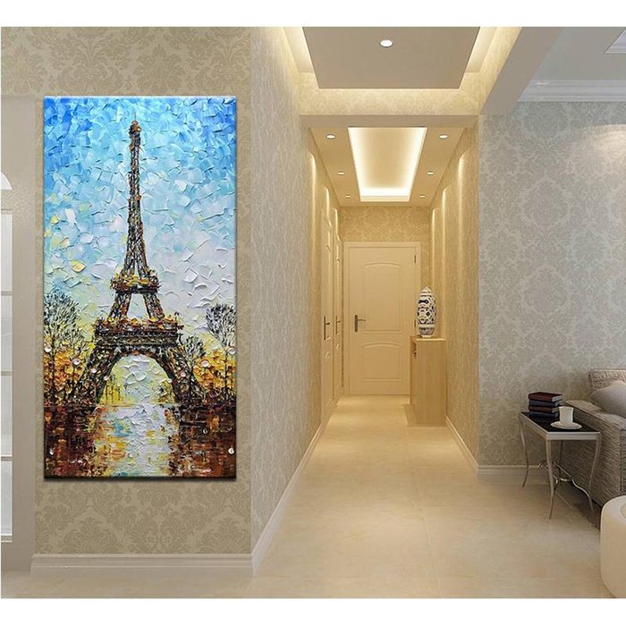 Quadro Pintura Tela céu torre eiffel rua azul 5564: 50cm (A) x 100cm (L)