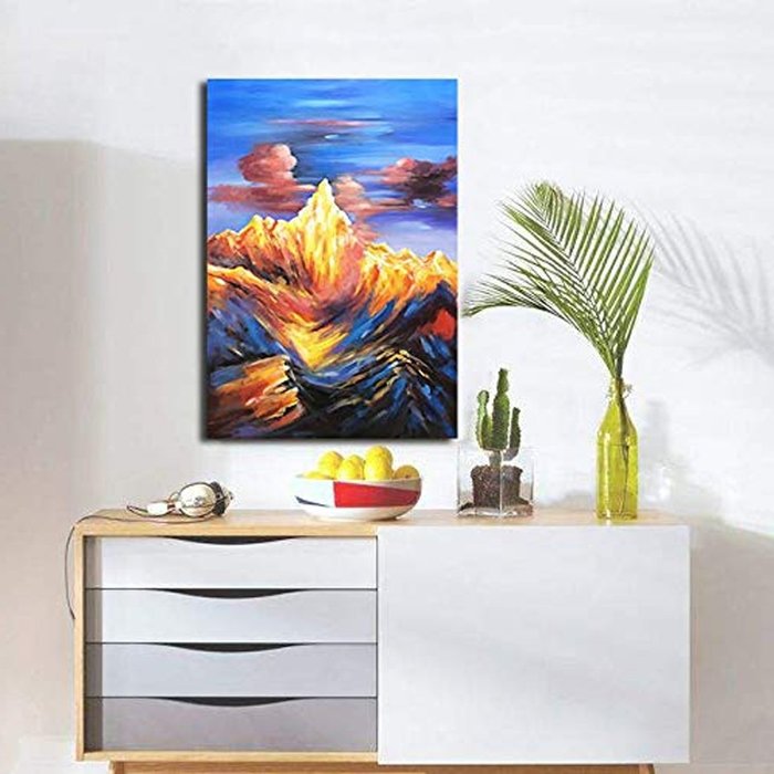Quadro Pintura Tela céu vermelho óleo corredor montanha 5401