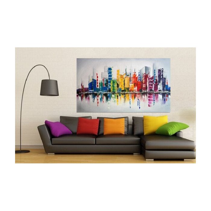 Quadro Pintura Tela Cidade Paisagem Urbana Cod 2439 - 80cm (A) x 130cm (L)