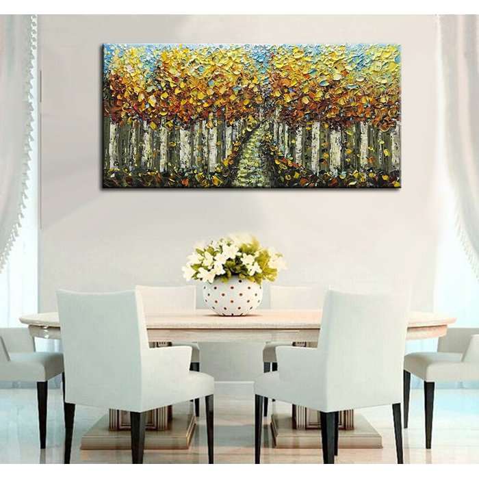 Quadro Pintura Tela cipreste folhas outono amarelo 5458