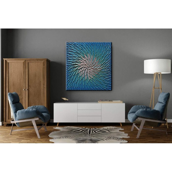 Quadro Pintura Tela finala branco óleo azul 5202: 110cm (A) x 110 cm (L)