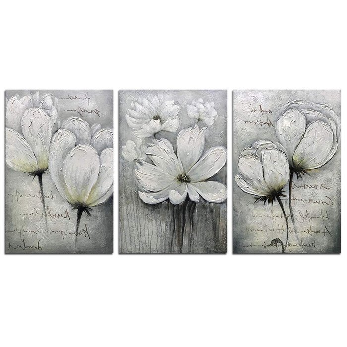 Quadro Pintura Tela floral branco flor painéis 5226: 70cm (A) x 140 cm (L)