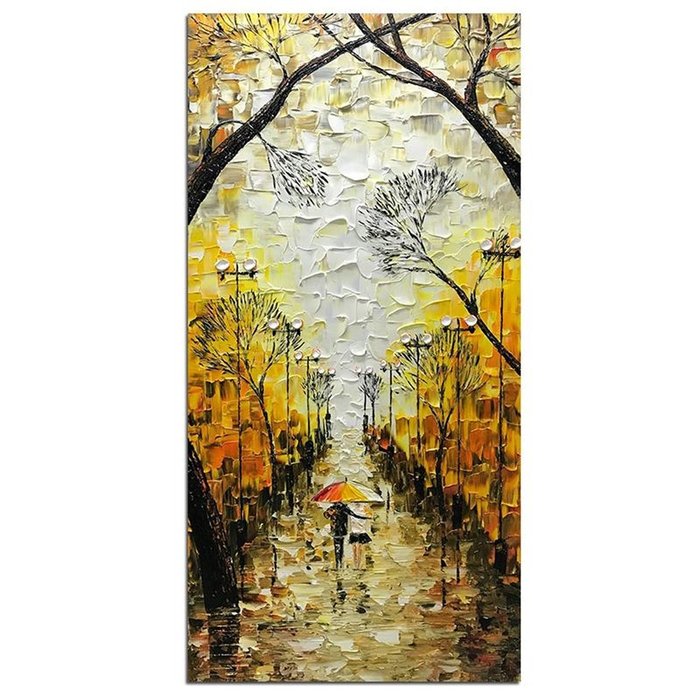 Quadro Pintura Tela fundo amarela luz outono rua Quarto 5563