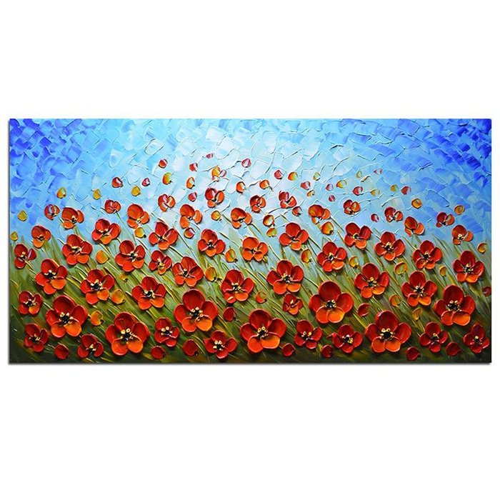 Quadro Pintura Tela idéias textura vermelho flor azul 5556: 50cm (A) x 100cm (L) vermelho