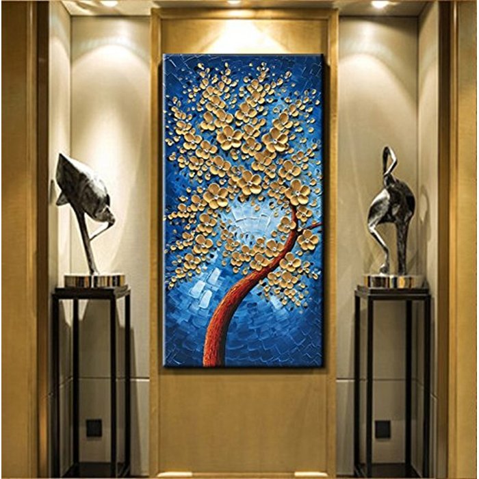 Quadro Pintura Tela ouro vertical óleo flor 5316