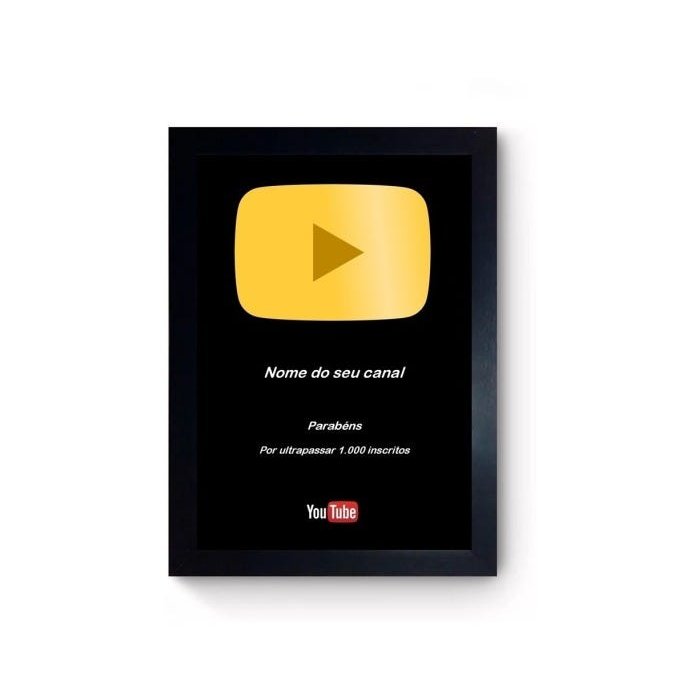 Quadro Placa 1000 Inscritos Youtube com seu nome Dourado