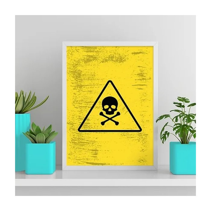 Quadro Placa Perigo Caveirinha 33x24cm:Madeira preta