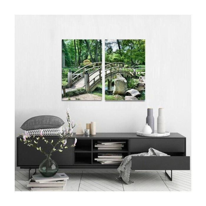 Quadro Ponte Jardim Japonês Arco Parque Jogo 2 Peças