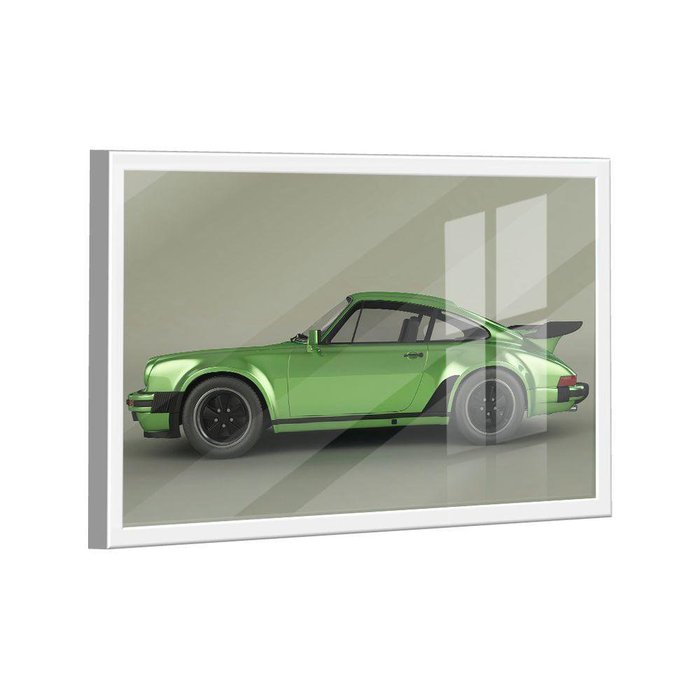 Quadro Porsche 911 Verde Metálico Lado -- BR ARTES Moldura Branca e Vidro - Pequeno 60x40 -