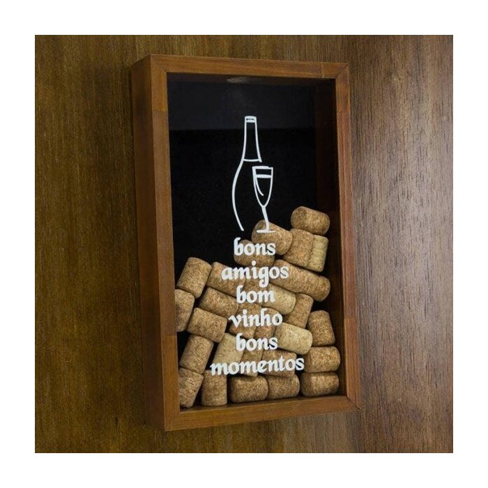 Quadro Porta Rolha de Vinho de Madeira Naturals Bons Amigos Bom Vinho 46,5cmx30,5cmx5cm Rojemac Castanho