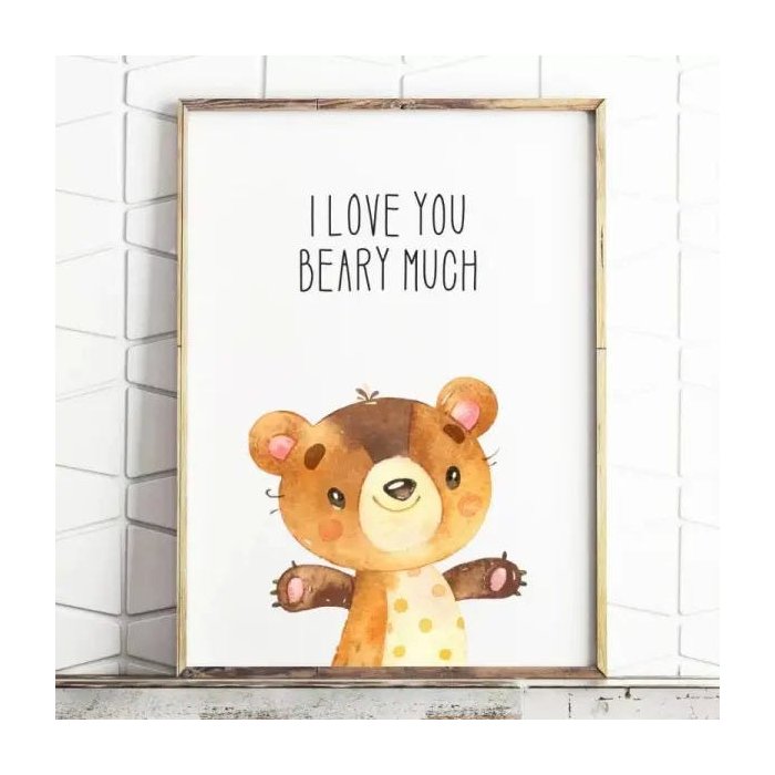 Quadro decorativo com moldura, Quadro Poster Infantil Ursinho Aquarela Amarelo Te Amo Muito.