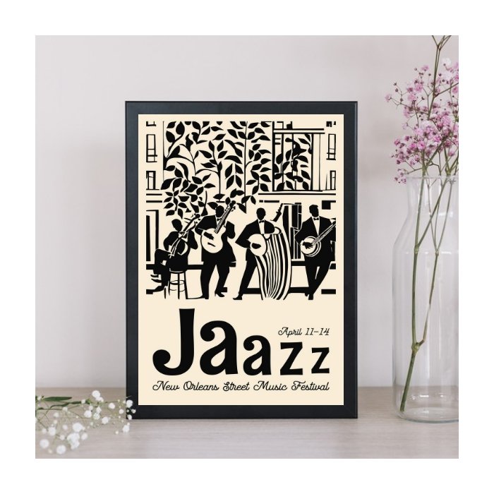 Quadro Poster Jazz Preto e Bege 24x18cm:moldura Preta